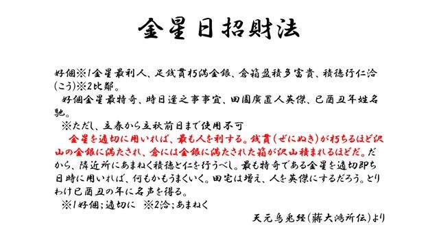 金星日時は特奇とされ、適切に使うと名の如く金運を招くことができるとされます。取り分け、三合金局を形成する巳年、酉年、丑年が最適です。2026年2月3日までは巳運ですし、特に1月は丑月ゆえ、このときを逃すべきではありません。